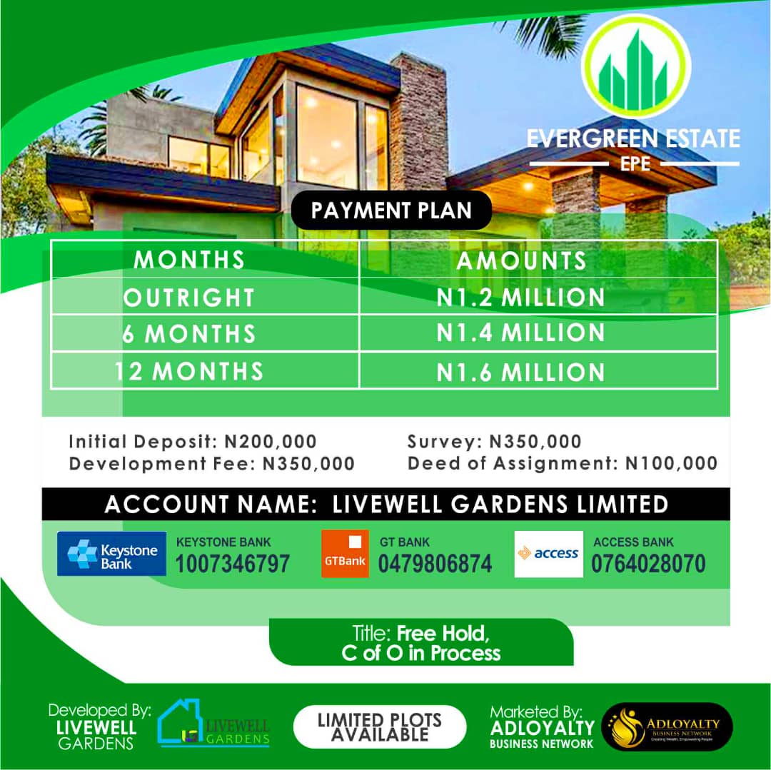 This is because EVERGREEN ESTATE offers a rare combination of accessibility, proximity to development, residential neighbourhood, security, good road networks, serenity and class.